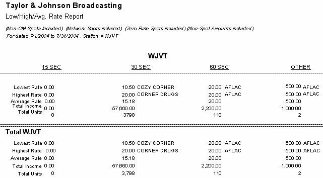 Use this report to show the Lowest, Highest, and Average Unit Rate for a specified date range, regardless of billing frequency, by spot length.