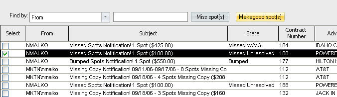 If you have been given the “Can Create Makegoods” permission in Setup Editor, use the following procedure to create a makegood for a missed-unresolved spot.