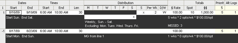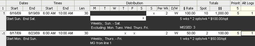 in the series (-2, -3, etc.). The new makegood line will be partially
